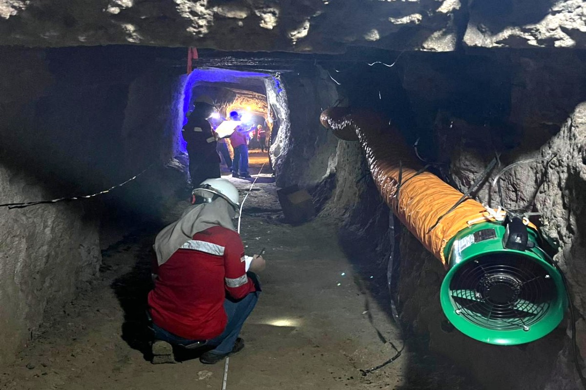 Pada praktikum Ventilasi Tambang, mahasiswa mempelajari sistem sirkulasi udara yang merupakan aspek vital dalam menjamin keselamatan kerja di lingkungan tambang bawah tanah. Kegiatan meliputi pengukuran kebutuhan volume udara, penggunaan anemometer untuk mengukur kecepatan aliran udara, gas detector untuk mendeteksi kandungan gas berbahaya, serta sling psychrometer untuk mengukur temperatur dan kelembaban udara di dalam terowongan.