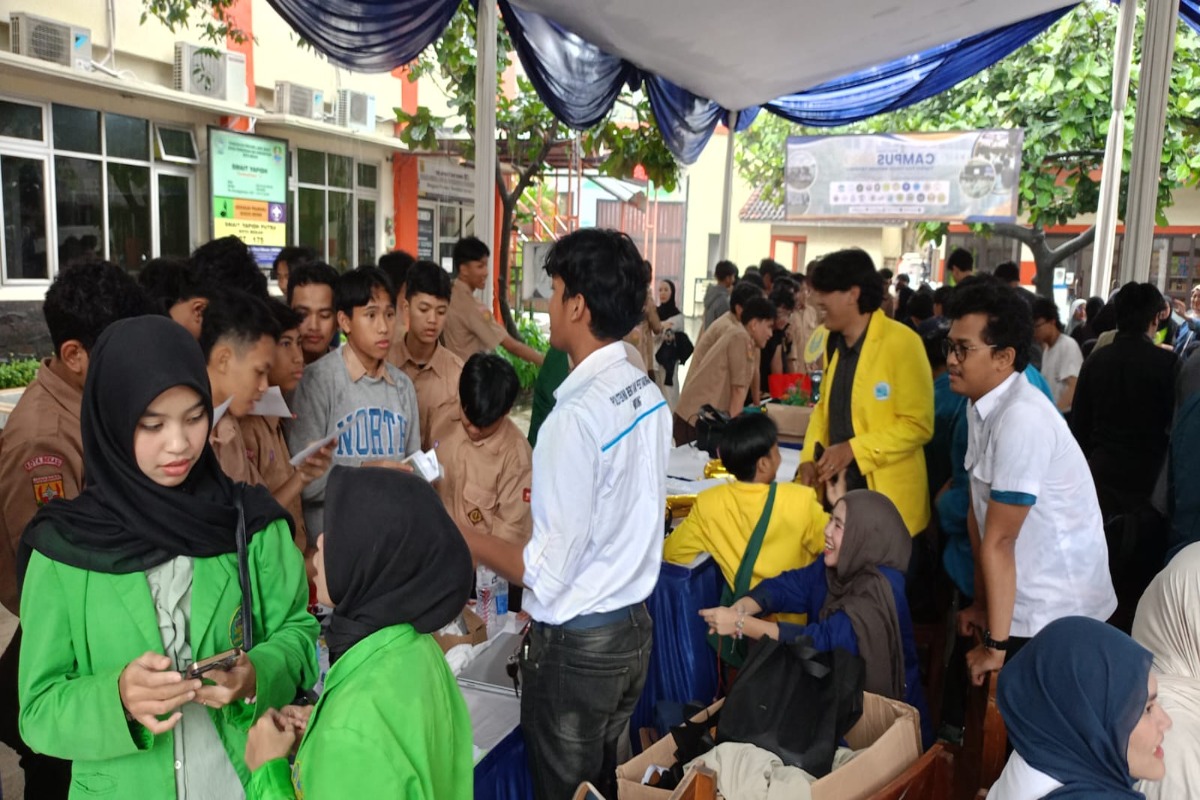 Antusiasme di Sesi Open Booth Setelah rangkaian seminar selesai, kegiatan dilanjutkan dengan sesi open booth yang disediakan oleh setiap kampus peserta. Pada sesi ini, antusiasme tidak hanya datang dari siswa kelas XII yang sedang bersiap lulus, tetapi juga diikuti secara aktif oleh siswa-siswi kelas 10 dan 11. Mereka memanfaatkan momen ini untuk mengunjungi stan PEP Bandung guna berkonsultasi lebih awal mengenai jalur pendaftaran, sistem perkuliahan, hingga gambaran umum dunia pertambangan.