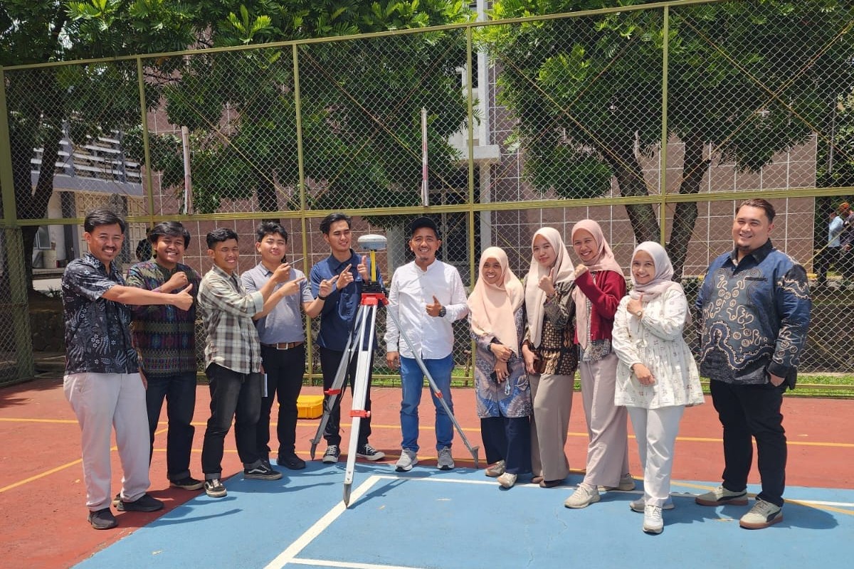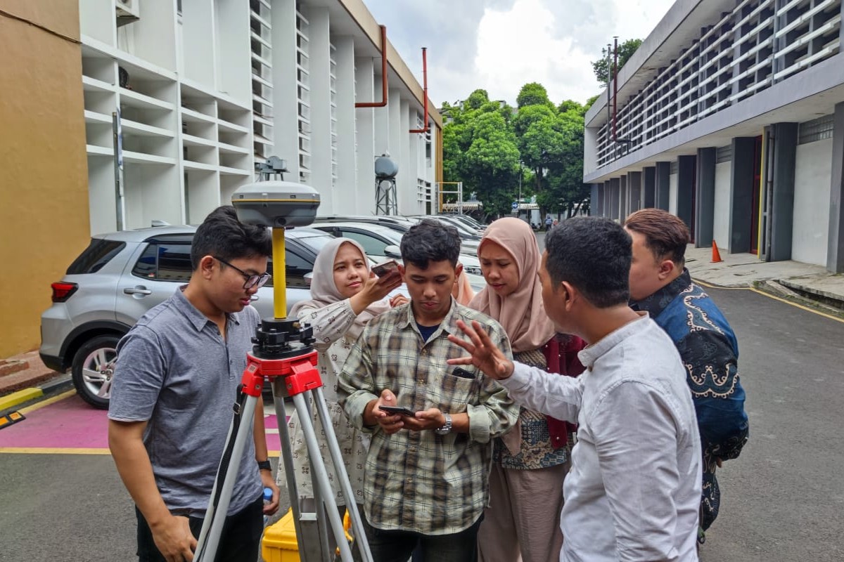 Setelah pemaparan teori, kegiatan dilanjutkan dengan praktik lapangan pengambilan data GNSS menggunakan GPS geodetik. Pada sesi ini, peserta melakukan pengukuran dengan metode statik dan Real Time Kinematic (RTK), mulai dari persiapan alat, pengaturan parameter pengukuran hingga proses pengambilan data di lapangan.