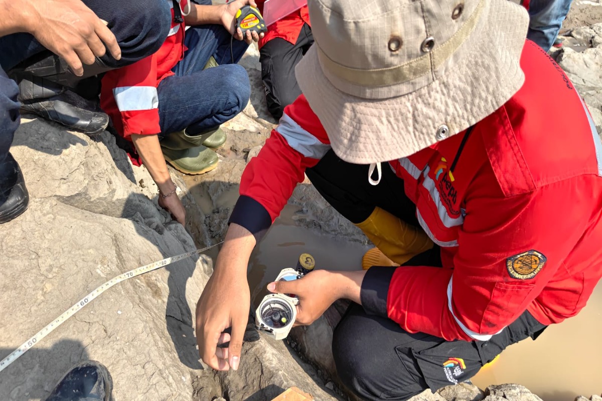 Di lokasi, mahasiswa dibimbing untuk menggunakan alat seperti kompas geologi guna mengukur arah dan kemiringan lapisan batuan. Mereka juga belajar mengamati langsung kondisi singkapan batuan, mencatat data hingga mendiskusikan interpretasi struktur geologi di lapangan.